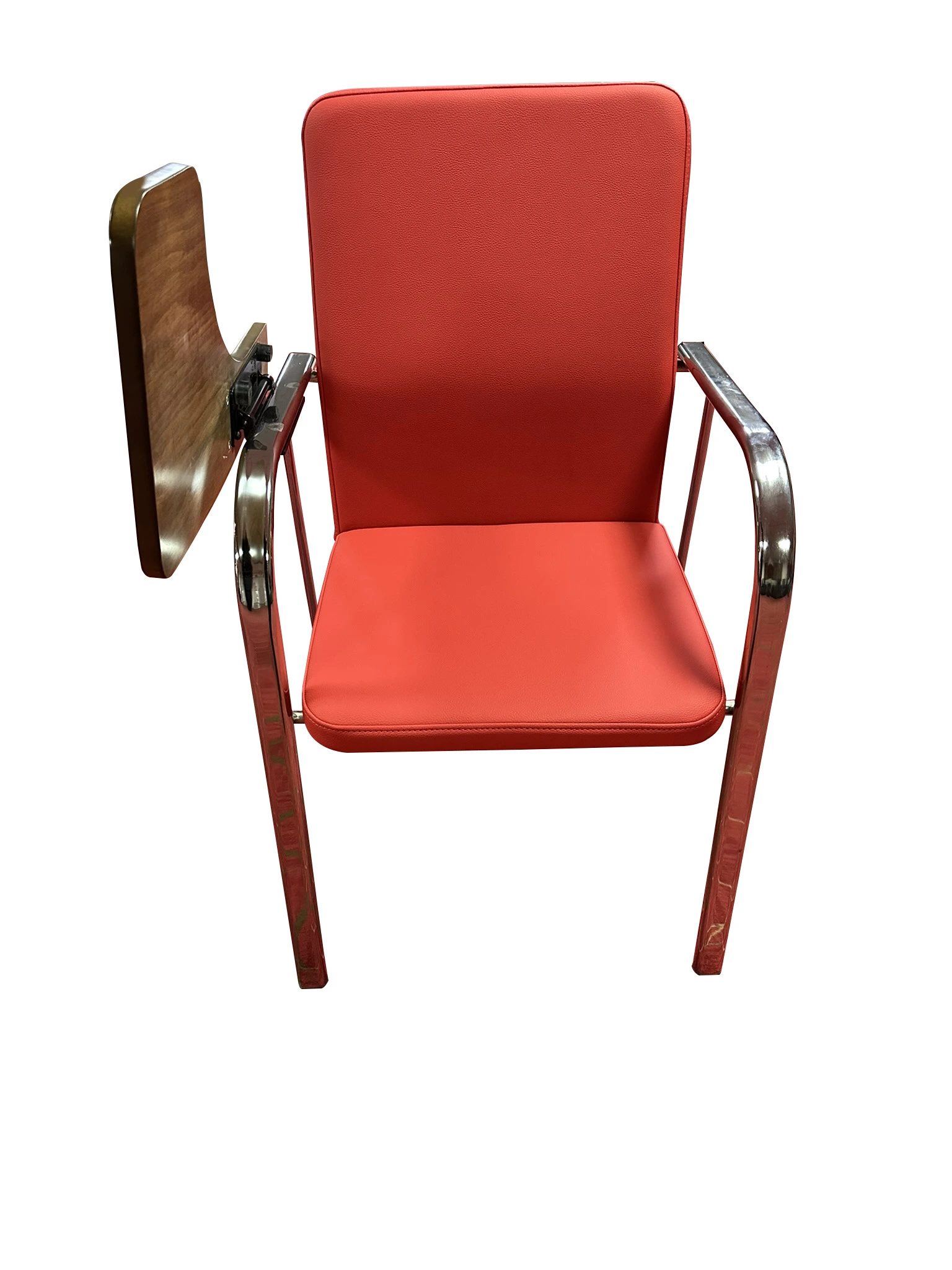 Arken, modern konferans ve toplantı salonları için tasarlanmış, fonksiyonel ve şık bir konferans sandalyesidir. Yukarı doğru kalkan kolçağa sabitlenen ahşap yazı tablası, not alma ve çalışma sırasında kullanıcıya pratiklik sunar. Döşemeli oturak ve sırt yapısı, uzun oturumlarda dahi konfor sağlar. Krom kaplama metal ayakları ile hem dayanıklılık hem de zarif bir görünüm sunan Arken, yazı tablasız seçeneği ile iç içe istiflenebilir özelliği sayesinde alan yönetiminde de büyük avantaj sağlar.